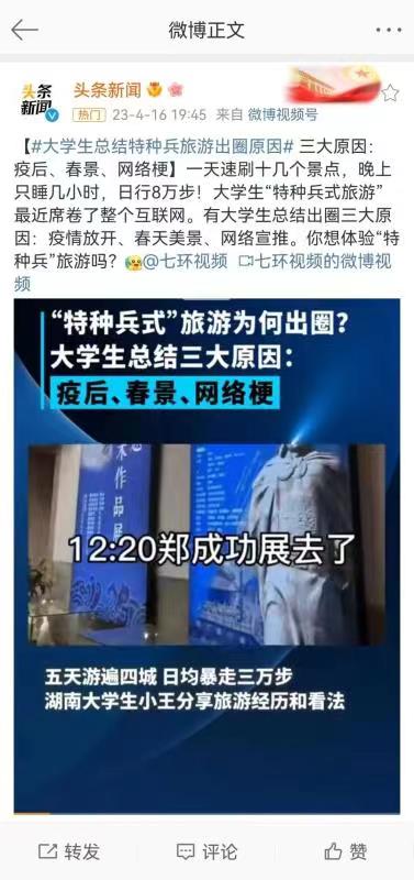 那究竟什么是“特種兵式旅游”?是指人們利用周末時間旅游,短時間、高效率逛景區(qū),甚至犧牲睡覺時間,一分鐘都不耽擱,主打的就是一個“去過”。越來越多的年輕人加入了“特種兵式旅游”的行列,成為了這一旅游趨勢中的重要力量。