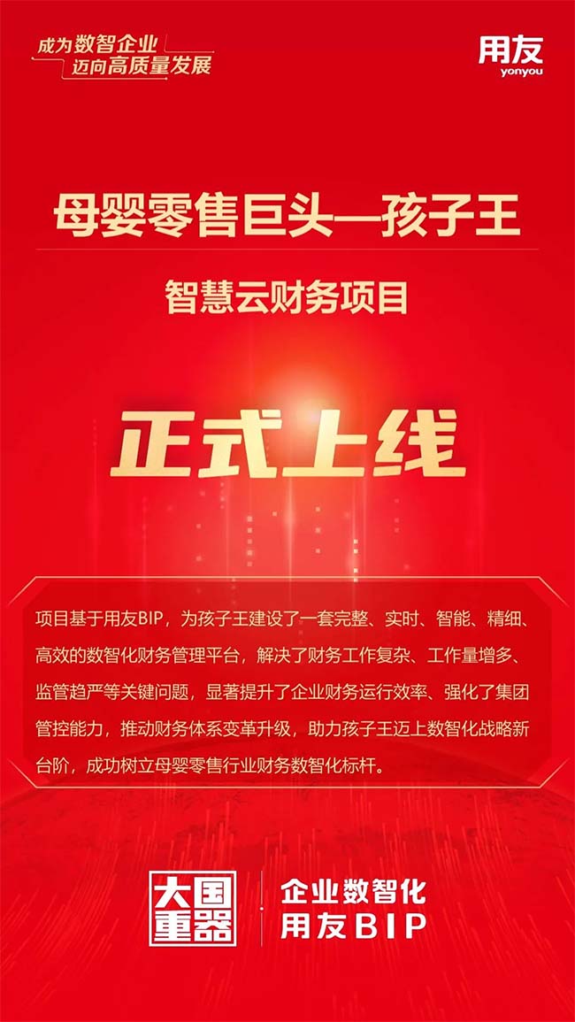 作為全球領(lǐng)先的企業(yè)數(shù)智化服務(wù)商,用友也將持續(xù)秉承用戶(hù)之友、持續(xù)創(chuàng)新、專(zhuān)業(yè)奮斗的核心價(jià)值觀,運(yùn)用新一代數(shù)智化架構(gòu)與技術(shù)使能孩子王財(cái)務(wù)創(chuàng)新,助力孩子王集團(tuán)“數(shù)智財(cái)務(wù)”建設(shè),打造國(guó)內(nèi)一流現(xiàn)代化母嬰童零售行業(yè)智慧云財(cái)務(wù)標(biāo)桿!