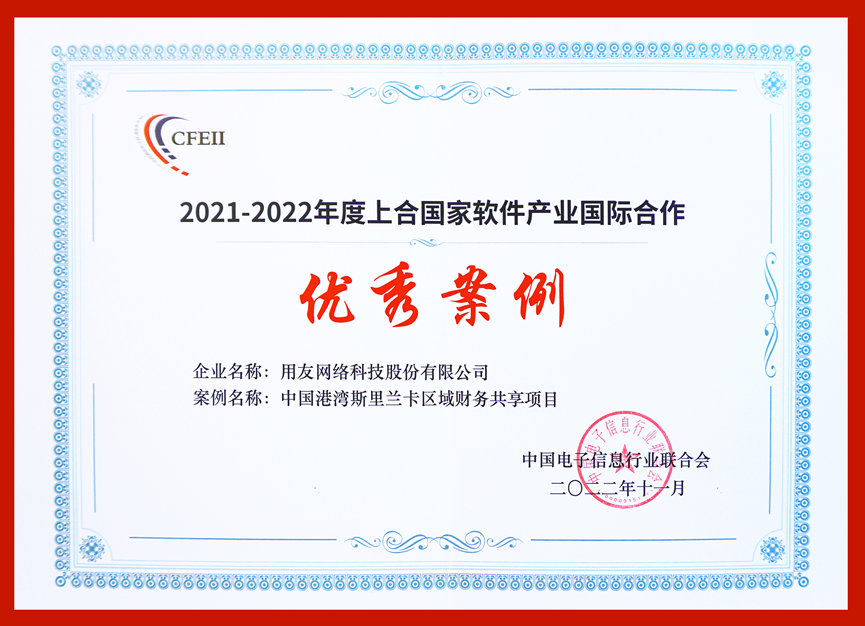 用友軟件承接的中國港灣斯里蘭卡區(qū)域財務(wù)共享項目,獲評“2021-2022年度上合國家軟件產(chǎn)業(yè)國際合作優(yōu)秀案例“。