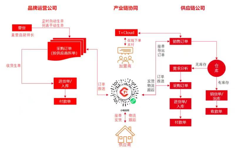 為了滿足餐飲門店要貨頻率高、時效性要求高的需求,遇江南在用友暢捷通T+Cloud的幫助下,應(yīng)用【智能供應(yīng)鏈】打通了“門店-供應(yīng)鏈公司-供應(yīng)商”三者之間的信息鏈路。