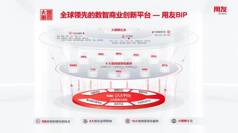 作為企業(yè)數(shù)智化云服務(wù)與軟件龍頭廠商,用友自1988年創(chuàng)立以來,一直專注于信息技術(shù)在企業(yè)與公共組織應(yīng)用與服務(wù)領(lǐng)域,先后發(fā)展成為中國最大的財務(wù)軟件提供商、亞太最大全球前10的ERP軟件提供商,并累計服務(wù)了上萬家大型企業(yè)信息化。近年來,用友戰(zhàn)略研發(fā)推出了全新一代服務(wù)企業(yè)數(shù)智化的商業(yè)創(chuàng)新平臺—用友BIP,已先后服務(wù)了海內(nèi)外不同規(guī)模的眾多行業(yè)領(lǐng)先企業(yè)的數(shù)智商業(yè)創(chuàng)新,被重要央媒譽為企業(yè)數(shù)智化的“大國重器”。