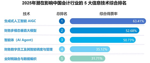 近日,上海國家會計學(xué)院發(fā)布的“2025年影響中國會計行業(yè)的十大信息技術(shù)”評選結(jié)果中,人工智能通用大模型第一次上榜便以“黑馬”之姿登頂,釋放出強烈的行業(yè)信號。隨著以DeepSeek等為代表的 AI 大模型技術(shù)不斷成熟與深入應(yīng)用,會計工作的流程與模式正在被重新定義,AI 正成為驅(qū)動會計行業(yè)發(fā)展的新引擎。