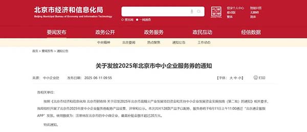 為進(jìn)一步降低中小企業(yè)創(chuàng)新發(fā)展成本,滿足日益增長的服務(wù)需求,北京市經(jīng)濟(jì)和信息化局近日宣布補充2025年度北京市中小企業(yè)服務(wù)券供給額度,服務(wù)券將持續(xù)發(fā)放至9月份。