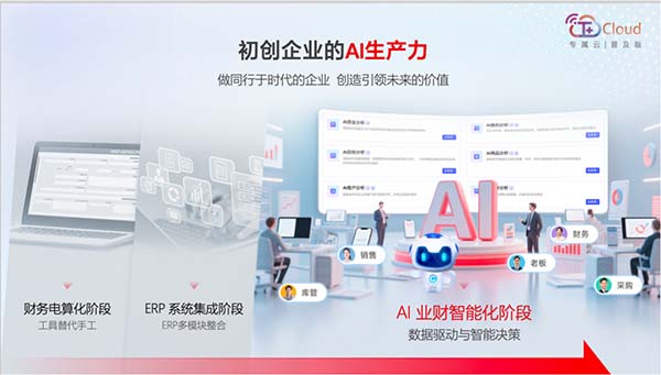 隨著全球AI技術(shù)浪潮席卷各行各業(yè),小微企業(yè)如何搭乘這班快車,實(shí)現(xiàn)業(yè)財(cái)管理的智能化升級(jí)?暢捷通T+Cloud專屬云普及版全面升級(jí),以“AI普及業(yè)財(cái)”為核心理念,旨在幫助小微企業(yè)低成本、高效率地實(shí)現(xiàn)數(shù)智化轉(zhuǎn)型。