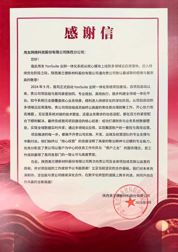 在陜西這片千年秦韻與現(xiàn)代科創(chuàng)交相輝映的熱土上,制造業(yè)的數(shù)智化轉(zhuǎn)型浪潮奔涌向前。陜西美蘭德新材料股份有限公司,作為國內(nèi)炭/炭復(fù)合材料領(lǐng)域的領(lǐng)軍企業(yè),在與用友網(wǎng)絡(luò)科技股份有限公司陜西分公司的長期合作中,始終以深度信任為基礎(chǔ),堅(jiān)持“整體規(guī)劃、分步實(shí)施”策略,穩(wěn)步推進(jìn)數(shù)智化轉(zhuǎn)型。雙方以用友YonSuite全鏈路云服務(wù)為支撐,攜手打造一體化數(shù)智平臺,實(shí)現(xiàn)了業(yè)財(cái)深度融合與高效協(xié)同管理,為陜西制造業(yè)的轉(zhuǎn)型升級提供了可借鑒的實(shí)踐路徑。